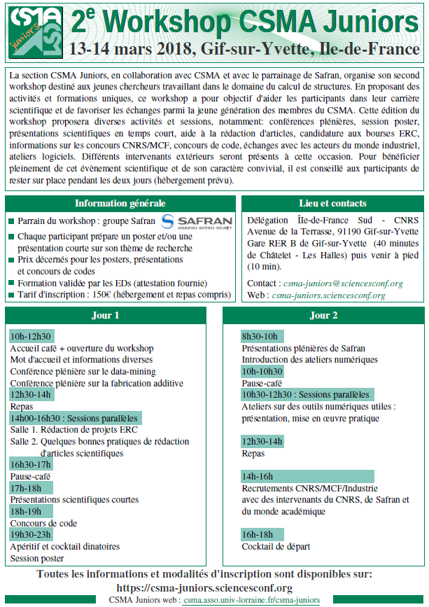 2e Workshop CSMA Juniors les 13 et 14 mars 2018, Gif-sur-Yvette, Ile-de-France
