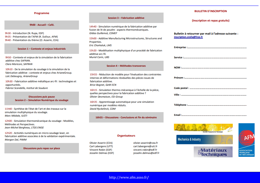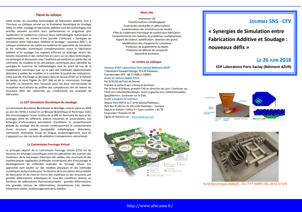 Journée thématique SNS – CFV « Synergies de Simulation entre Fabrication Additive et Soudage : nouveaux défis » le 26 juin 2018